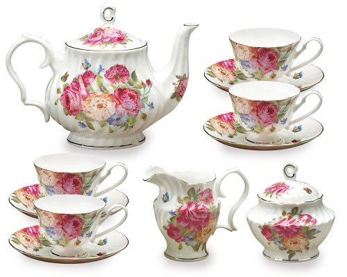 Gracie Bone China 11-Piece Tea Set, Pink Sandra's Rose by Gracie Bone China by Coastline Imports